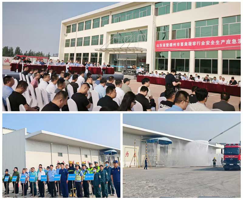 演練活動(dòng)在山東德久食品有限公司舉辦。演練模擬內容為:某屠宰企業(yè)成品庫叉車(chē)碰破制冷管道,造成液氨泄露,當地迅即啟動(dòng)應急救援預案,成功開(kāi)展應急救援。劉國華同志指出,本次演練是省局開(kāi)展“安全生產(chǎn)月”的重要活動(dòng)之一,演練真實(shí)客觀(guān)地反映了屠宰企業(yè)生產(chǎn)過(guò)程中可能遇到的危險情況,整體設計合理,處置果斷有力,流程標準規范,協(xié)作緊密有序。既全面檢驗了應對屠宰安全生產(chǎn)事件的組織能力、協(xié)調能力和實(shí)戰能力,也達到了“以演促練、以練促訓”的目的。要求各市、各相關(guān)單位,認真學(xué)習借鑒這次應急演練的經(jīng)驗做法,結合行業(yè)管理和當地實(shí)際,加強部門(mén)間協(xié)作配合,積極組織屠宰企業(yè)、從業(yè)人員開(kāi)展安全生產(chǎn)培訓教育、應急演練等活動(dòng),提升全員應急救援能力,全力抓好安全生產(chǎn)各項工作,為全省屠宰行業(yè)高質(zhì)量發(fā)展創(chuàng )造安全穩定的環(huán)境。德州市委副秘書(shū)長(cháng)、市檔案局局長(cháng)朱振東,陵城區區委副書(shū)記、區長(cháng)時(shí)磊,區委副書(shū)記任營(yíng)到場(chǎng)觀(guān)摩演練。